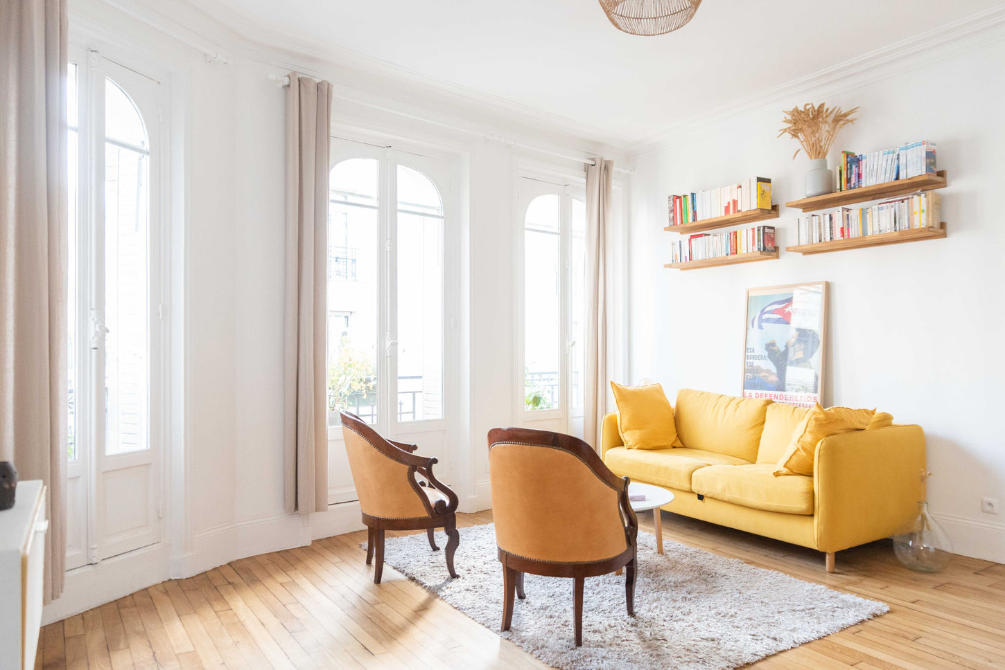Reportage réalisé dans un appartement parisien situé au cœur du 2ᵉ arrondissement. Un intérieur baigné de lumière, au charme typiquement haussmannien, mettant en valeur les volumes, les matières et l'élégance sobre du lieu.