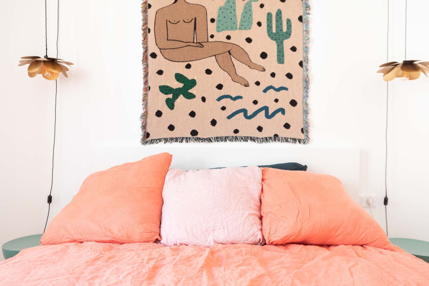 Reportage réalisé dans un deux-pièces parisien baigné de lumière, où les murs et meubles blancs servent de toile de fond à des touches de couleur subtilement intégrées dans la décoration. Cette palette épurée et lumineuse invite à la détente et crée une atmosphère apaisante, comme une parenthèse ensoleillée au cœur de la ville. L’agencement réfléchi valorise les volumes tout en assurant une circulation fluide, renforçant cette sensation de légèreté et d’évasion propre aux séjours en vacances.